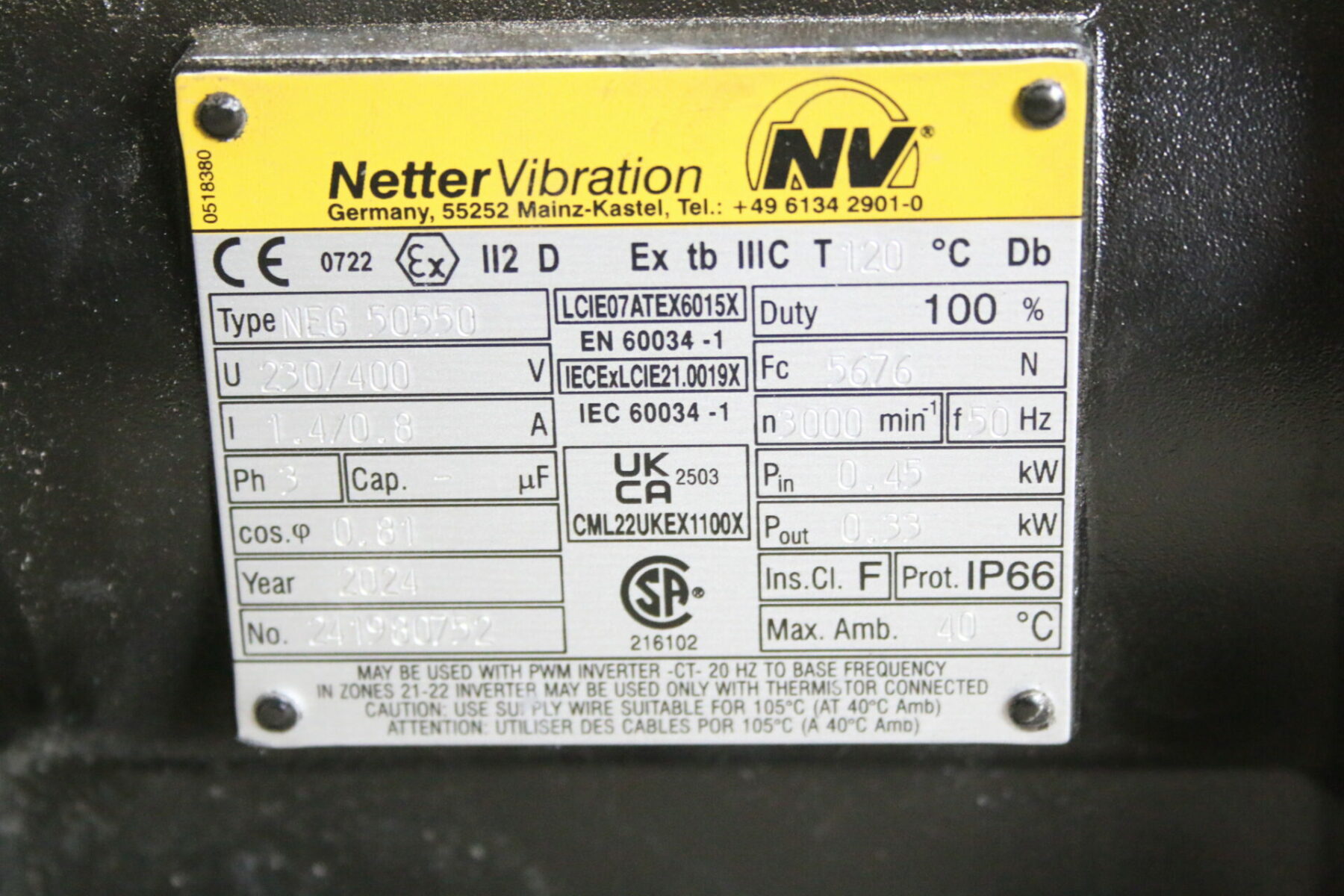Zu verkaufen steht ein Elektro-Vibrator der Marke Netter Vibration, Typ NEG50550 (siehe Bilder).