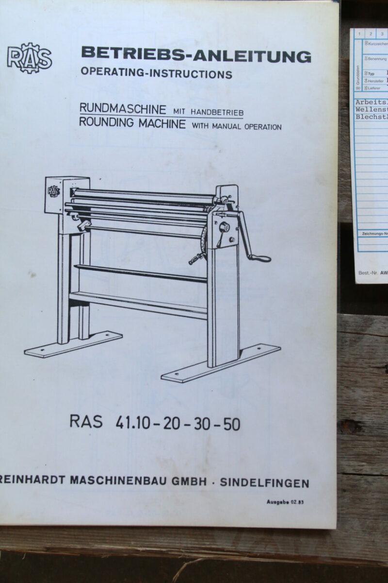 Zu verkaufen steht eine Rundbiegemaschine der Marke RAS, Typ 41.10 (siehe Bilder).